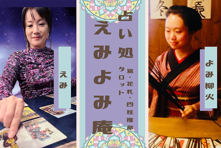 えみはタロットを用いて、あなたの今の一歩をそっと応援します。よみ柳火は周易・花札・四柱推命を用いて、運命の地図を描き、行く先を照らします。花小路の粋な雰囲気の中で、心ほどけるひとときを過ごしませんか。